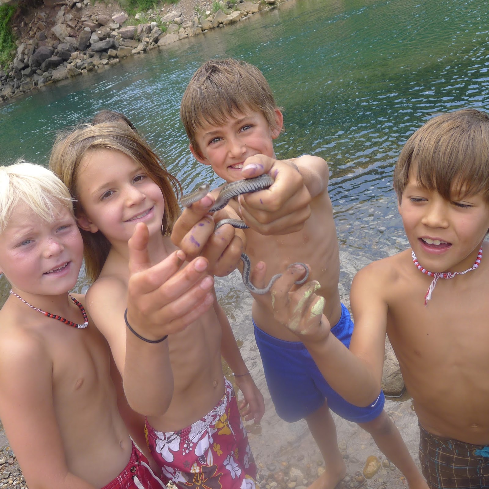 Our new favorite spot! Swimming and damn building in the cool clear waters of Junction Creek. To get warm we bask on the boulders. We caught our own bait and fished and even found a sandy beach. Pure heaven.